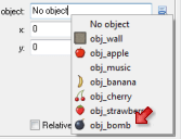 Aynı yolla kiraz ve çilek için de obje oluşturun. Onlara farklı hızlar ve güzergahlar belirleyip skoru yüksek veya alçak yapabilirsiniz. Eğer çok ağır gelecekse, önceden yaptığımız bir objeye sağ tıklayıp Duplicate‘i seçin. Bu, o objenin kopyasını oluşturur. Şimdi objenin adını ve spritesini, ve de çeşitli aksiyonlar için değerlerini değiştirebilirsin (Üzerlerine çift tıklayarak).