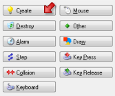 İlk adımda obje oluşunca hareket etmesini sağlayacağız. Add Event butonuna tıklayın. Gelecek formda Create(Obje oluşunca gerçekleşmesini sağlayan event) eventini seçin :