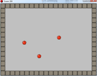 Eğer önceki adımları doğru yaptıysanız Game Maker ekranı kaybolacak ve elmaların etrafta dolandığı bir ekran gelecek. Eğer elmalar duvarlara değerse sekmeleri lazım. Ve eğer bir elmaya sol tıklarsanız, elma başka yere ışınlanacaktır ve ekranın başlığındaki skor artacaktır.