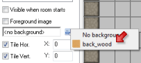 (Bir odada arkaplanlarla ilgili pek çok özellik vardır, ama biz şu an onlara ihtiyaç duymuyoruz. Bununla ilgili daha çok bilgi yardım dosyasında mevcuttur.) Sol üstteki yeşil tike tıklayarak oda penceresini kapatın. En iyisi şimdi oyunu kaydedin ve çalıştırın ki arkaplanın gözüküp gözükmediğini kontrol edin.
