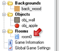 Artık elmamız ve duvarımız hazır, şimdi bize onları koyacak bir oda lazım. Odalar oyuncunun oyunda gördüğü mekanlardır. Bizim oyunumuzun sadece 1 odaya ihtiyacı var ama Game Maker’la yapılan oyunlar birçok farklı odaya sahip olabilir. Oda oluşturmak için Resources menüsüne, ardından da Create Room seçeneğine tıklayın veya oda oluşturma kısayol butonuna basın :
