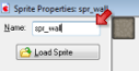 Öncelikle objeye obj_wall gibi tanıtıcı bir isim veriyoruz. Ardından, objeye spritesini vermek için, <no sprite>‘nin sağındaki menü butonuna tıklayın ve belirecek menüden duvar spritesini seçin :