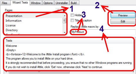Öncelikle programın yüklü olduğunu varsayıyorum, değilse Google’den arayıp bulmak çok kolay. Öncelikle yapmamız gereken programı açmak ve gelecek olan sihirbaza “İptal” diyerek sihirbazı kapatmak. Ardından da yukarıdaki “Wizard Texts” sekmesine tıklayın. Şimdi aşağıdaki resimdeki numaralandırılmış yerlerle neler yapacağımızı göstereceğim :