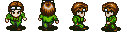 Oyunumuzun şu anki grafikleri biraz zayıf. Bunu gelin biraz daha geliştirelim. Asıl yapmamız gereken karakterimizin gittiği yöne doğru bakmasıdır. Bunu yapmanın en kolay yolu her biri farklı yöne bakan 4 alt resme sahip olan yeni bir sprite oluşturmaktır, tıpkı şekildeki gibi: