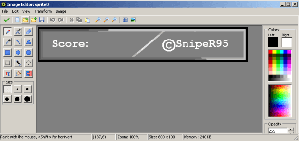 Evet Spritemizi Çiziyoruz. 1.Dersimdeki Gibi 3Boyut Kullandım Spritemde. Spritenizi İstediğiniz Gibi Çizebilirsiniz Fakat Ben Skor Yerini Bu Skor Boarda Göre Yaptım Sizde Ona Göre Yaparsınız.