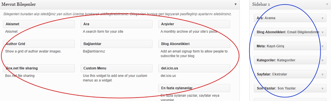Böylece menüyü basit anlamda tanımış olduk. Şimdi yönetim panelindeki diğer önemli kısımlara bakalım. İlk resimde yeşil daire içinde gördüğünüz kısımda sitenize “spam” yorum yapılıp yapılmadığı, sitenizin teması ve kaç tane eklenti içerdiği yazıyor.