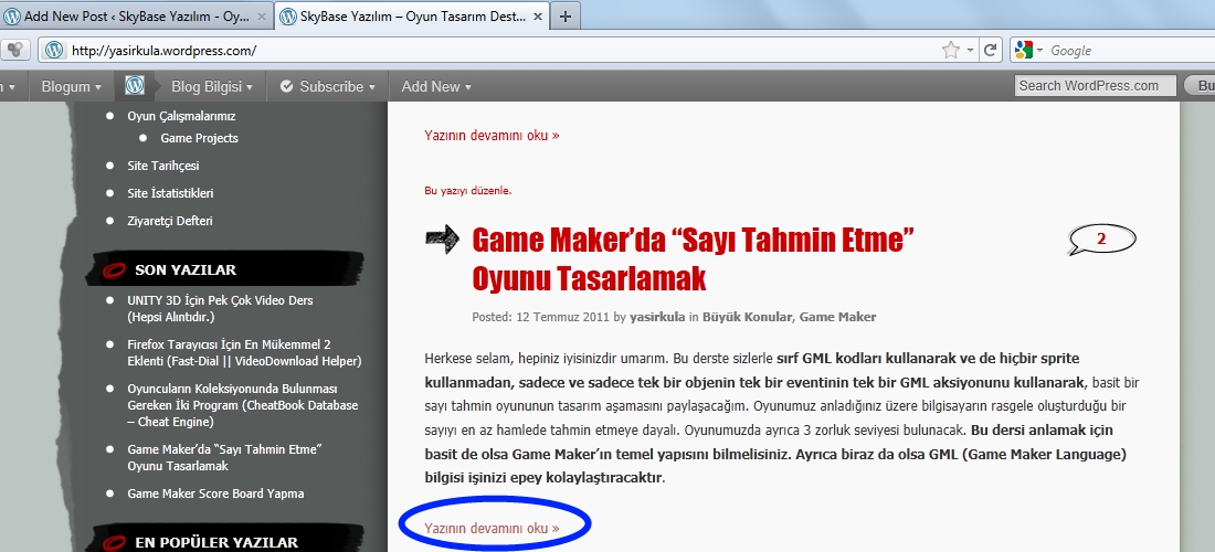 Resimdeki mavi dairedeki “Yazının devamını oku >>” butonuyla kullanıcı dilerse yazının devamını okuyabilir. Umarım kullanımı anlaşılmıştır.