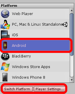 File-Build Settings yolunu izleyin. Gelen pencerede Platform olarak Android‘i seçin ve Switch Platform deyin. Sonra oradaki Player Settings… butonuna tıklayın.