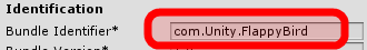 Inspector‘da açılan sayfada Other Settings altındaki Bundle Identifier‘ı “com.Unity.FlappyBird” olarak değiştirin: