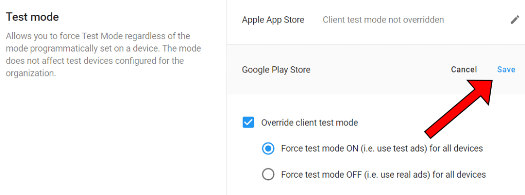 Banner kodunda olduğu gibi, burada da Admob’un kendi sağladığı interstitial reklam kimliğini kullandım. Cihazımızı test cihazı olarak ekledikten sonra kendi reklam kimliklerimizi test etmeye hazır olacağız (birazdan göreceğiz).