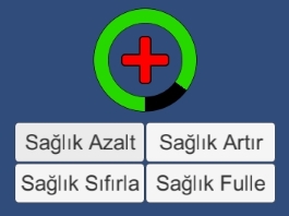 Örneği test etmek için tek yapmanız gereken şu unitypackage‘ı projenize import edip oradaki scene‘i açmak: https://www.dropbox.com/s/j1zg0c3oon2zzzf/DaireselSaglikBari.unitypackage?dl=0