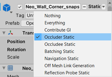 Bu objeler, duvar görevi gören, yani arkalarında kalan objeleri gizleyen büyük objelerdir. Benim sahnemde sadece duvarlar ve büyük sütunlar Occluder Static; bilgisayar, masa, sandalye vb. küçük objeler, arkalarında kayda değer bir şey gizleyebilecek kadar büyük olmadıkları için onları Occluder Static yapmadım. Şehirde geçen bir oyun yapıyorsanız da, etraftaki binalar potansiyel Occluder Static objelerdir.