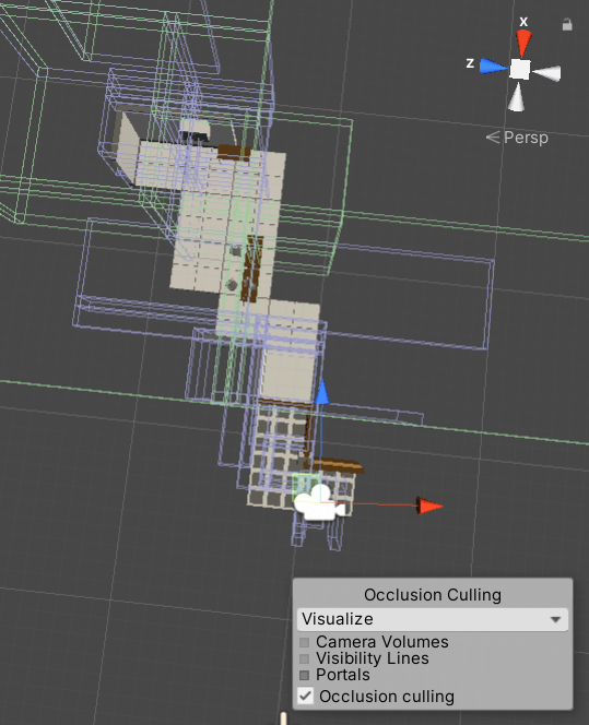 Hierarchy’de kamera seçili iken, Occlusion Culling penceresindeki Visualization sekmesine geçiş yaparak, Scene panelinde Occlusion Culling’i önizleyebiliriz. Örneğin üstteki sahneyi bir de Scene panelinden önizleyecek olursak:
